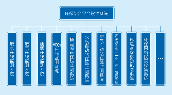 目前已研發(fā)廢水在線監(jiān)測系統、廢氣在線監(jiān)測系統、油煙在線監(jiān)測(監(jiān)控)系統、VOCs在線監(jiān)測系統、揚塵噪聲在線監(jiān)測系統、水質自動站在線監(jiān)測系統、空氣自動站在線監(jiān)測系統、污染源企業(yè)“一企一檔”管理系統、環(huán)境監(jiān)察移動執(zhí)法系統、環(huán)保網絡民意收集系統等多個應用子系統。